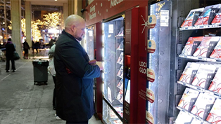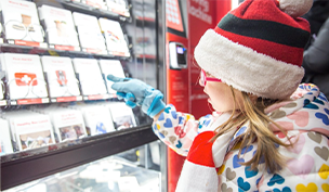 - Browse the available gift cards on the machine and select the one you feel moved to give.